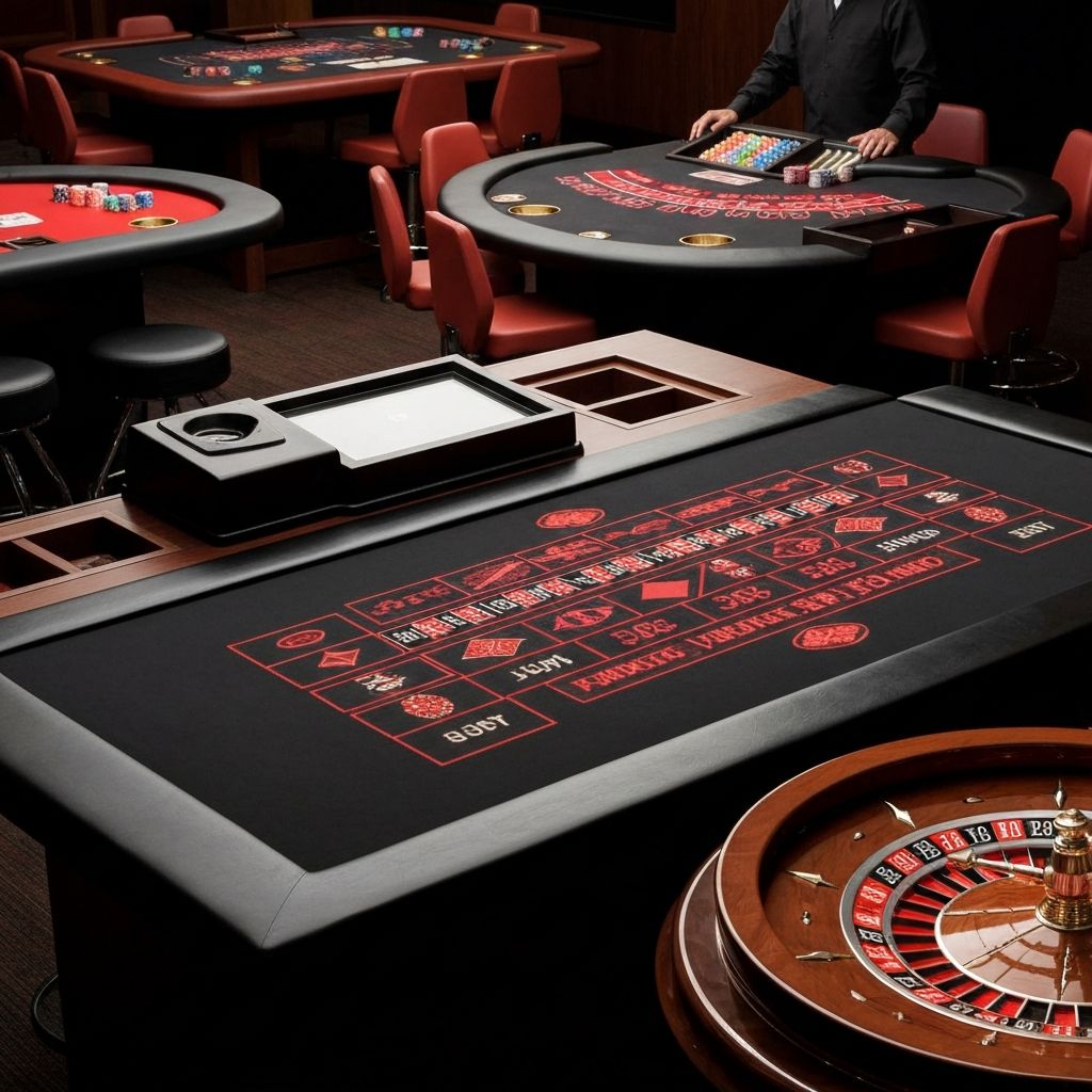 Luksusowe stoły do ruletki z wysokiej jakości tekstyliów.